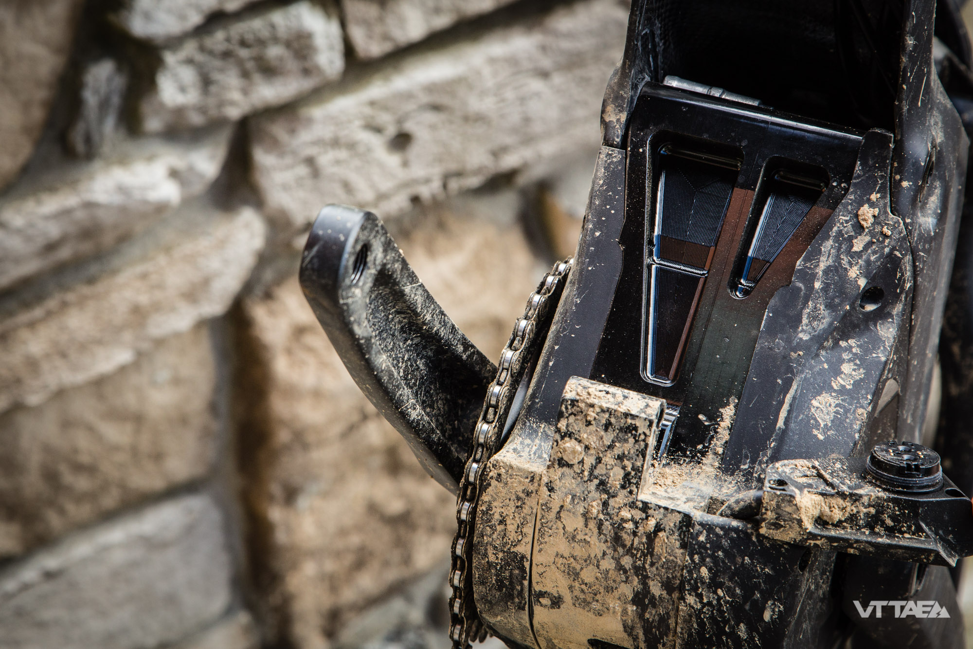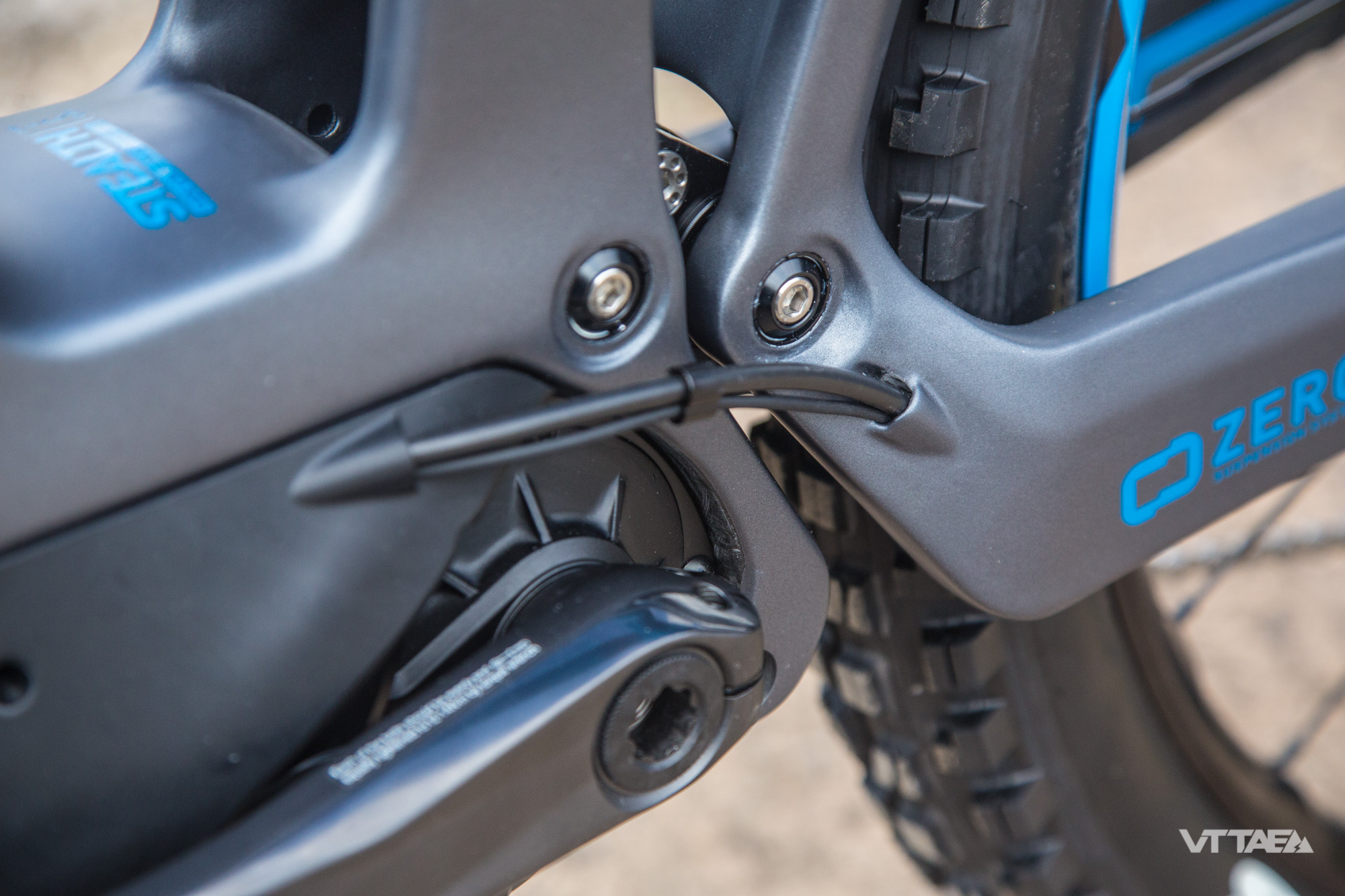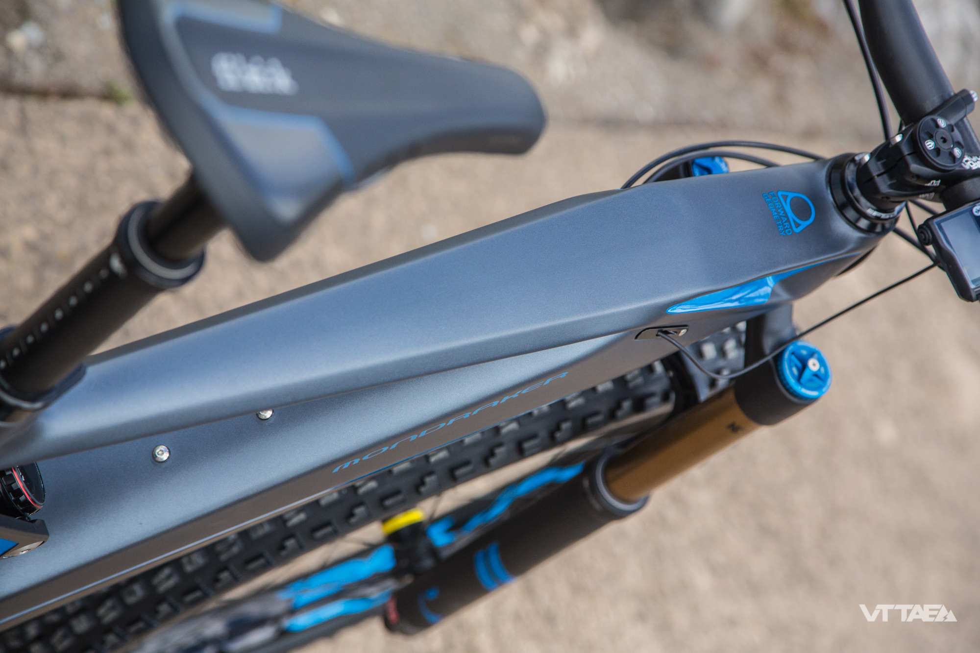 Le tout sublimé d’arêtes et reliefs pour minimiser le côté imposant du bloc moteur et de la batterie intégrée au tube diagonal. Le carénage moteur en plastique de la version alu est cette fois-ci directement moulé à l’ensemble du châssis. Le support moteur forgé a été repensé, allégé et optimisé pour ventiler au mieux le moteur.